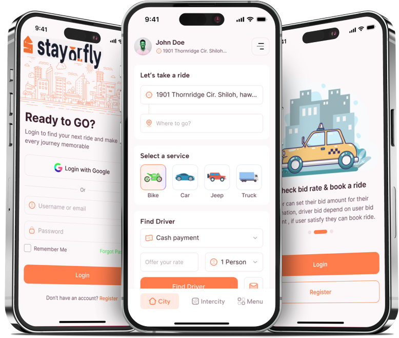 Riders enter their trip details, and drivers submit competitive bids. Riders can compare offers based on price and ratings.